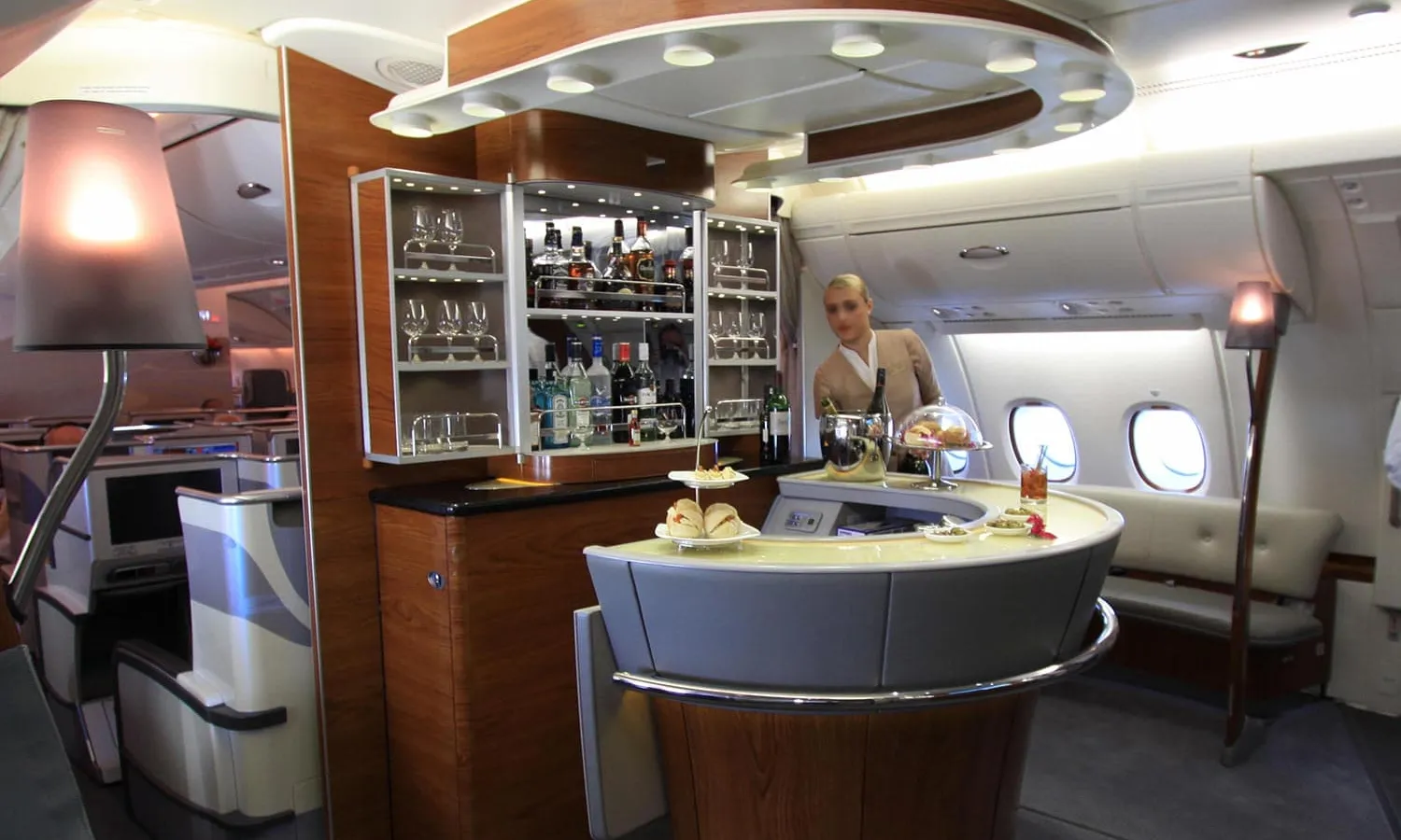 Although Airbus advertised the A380 as an ocean liner of the air, with bars, wide seats and lounge areas, the plane would essentially have a more traditional configuration, despite some customers promising amenities, such as Emirates and Singapore Airlines, due to the nature of their corporate clientele.