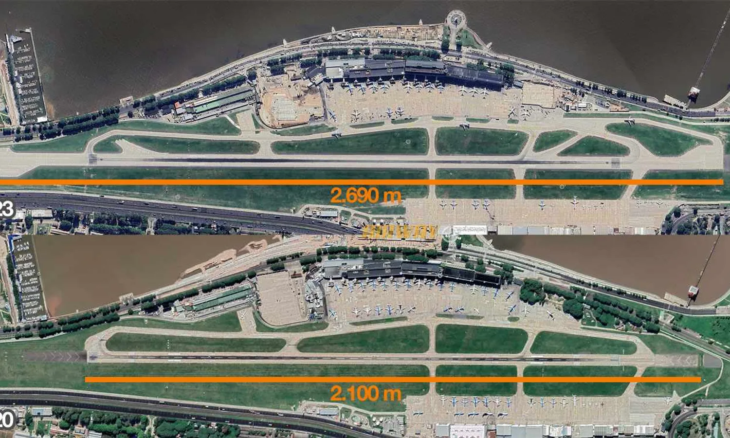 The private company, which operates both Ezeiza and Aeroparque, expanded the airport's single runway to 2,690 meters, expanded patios and a taxiway and built new facilities to accommodate the Airbus A330-200 widebodies, which will be used on both routes.