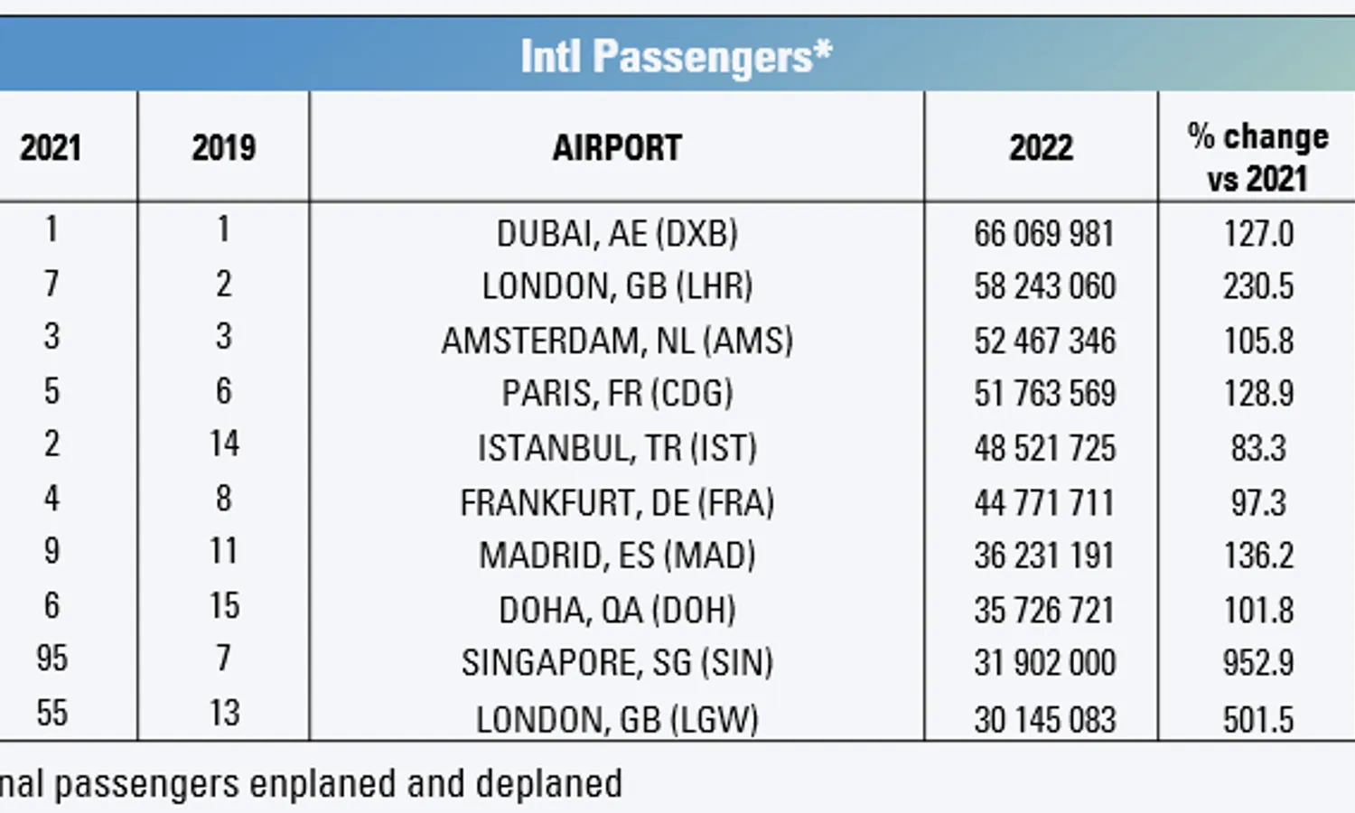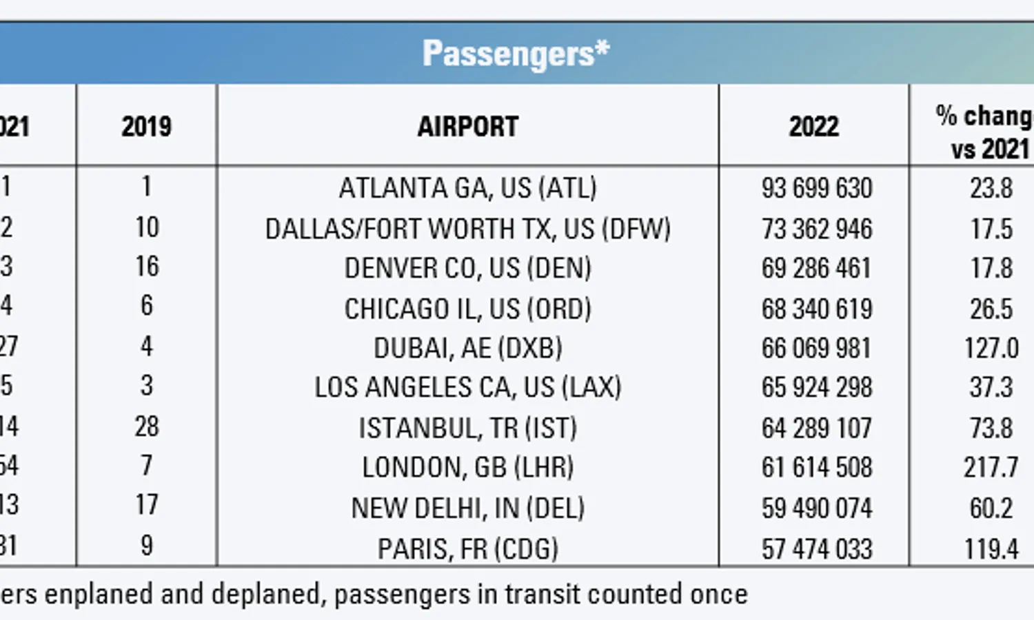 “The new top 10 busiest airports for passenger traffic reflects the resilience of the airport and aviation industry, and the eagerness of passengers to travel by air. While US airport hubs were able to recover quickly due to their strong domestic market, we are now witnessing global hubs joining upper ranks—including Dubai, Istanbul, and London Heathrow airport," said Luis Felipe de Oliveira, ACI World Director General.