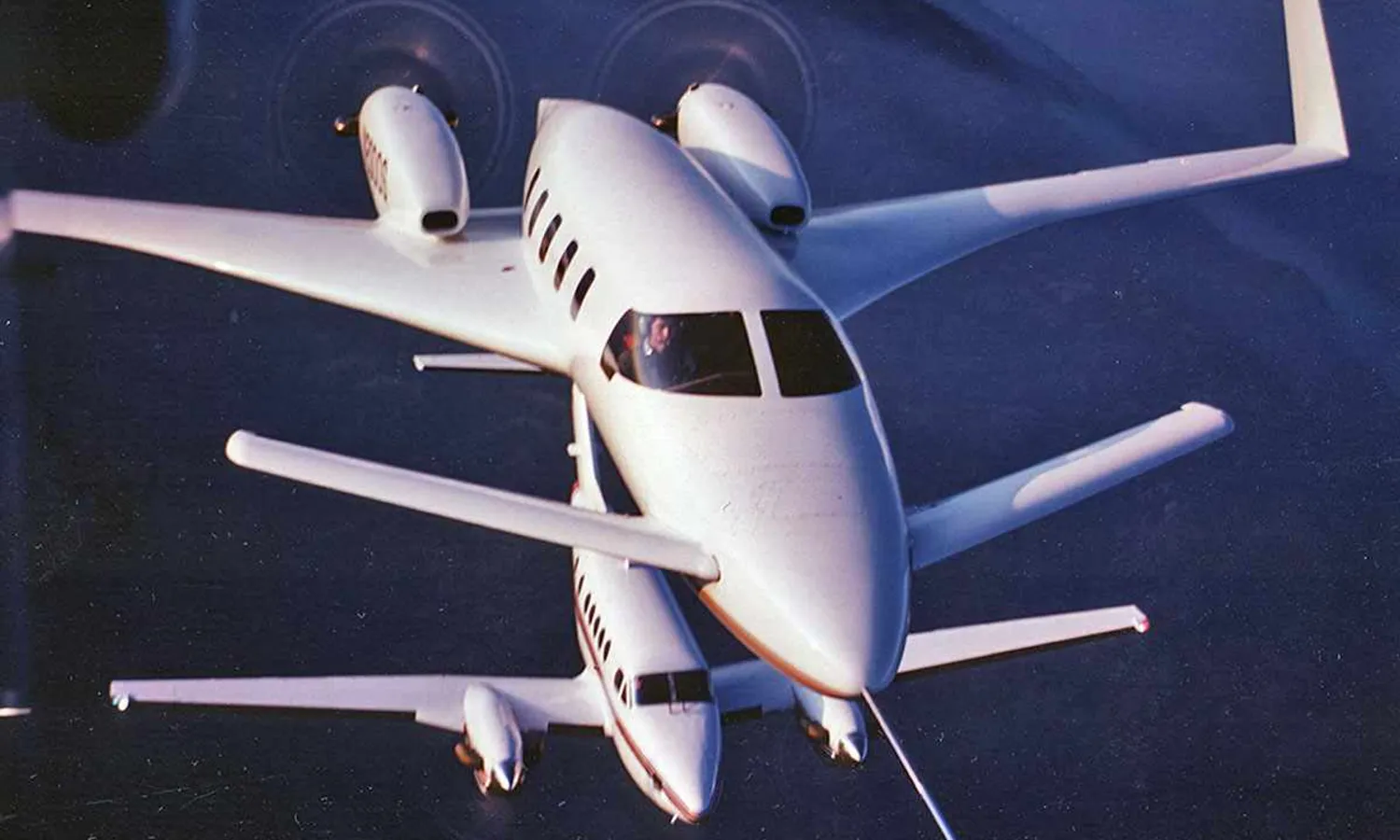 Beech had already started studies for an aircraft that could not only replace the King Air but also offer superior performance and a lower operating cost. To achieve this goal, an innovative proposal would be needed, something Bill Lear, the creator of Learjet, had already tried with Lear Fan, a twin-engine turboprop with only a set of pusher propellers and a Y-tail. The prototype flew on January 1st, 1981, but Lear had already passed away two years earlier and the program ended up being canceled.