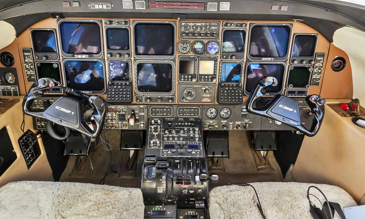 Internally, the new plane also innovated with the first glass cockpit of its category, a Rockwell Collins avionics suite with 16 EFIS displays in place of analog instruments - at the time, interchangeable EFIS screens did not yet exist.