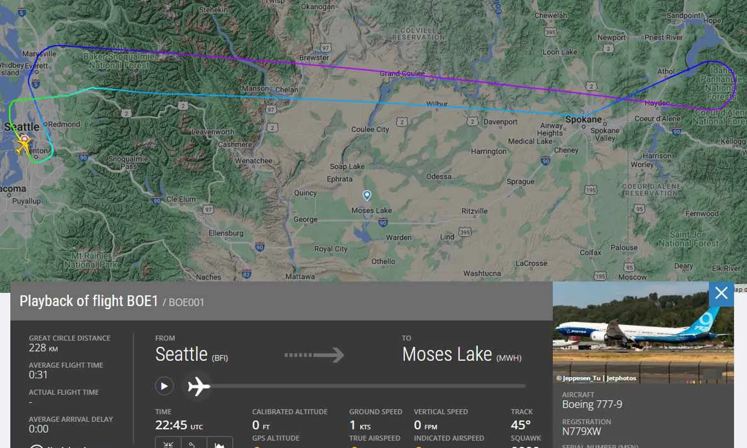 The 777-9 took off from Boeing Field for a local flight and landed again in Seattle. Since then, the widebody jet has completed six more flights, including landings at Spokane International Airport.