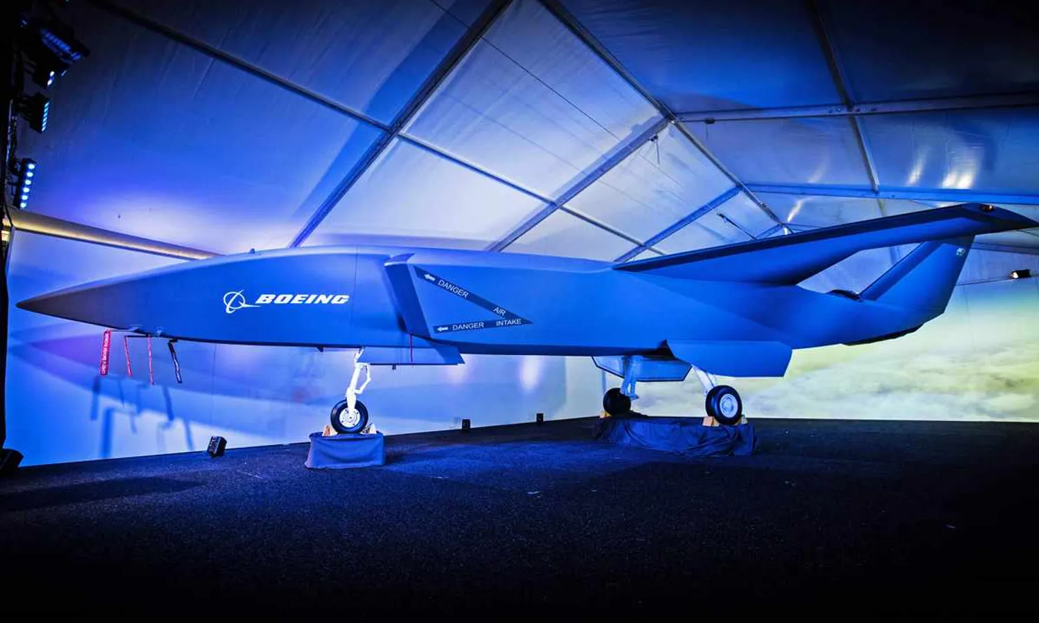 An aircraft mockup was exposed at the event revealing stealth shapes and dual vertical stabilizers. Boeing did not disclose details of the model, but said its range would be more than 2,000 nautical miles.