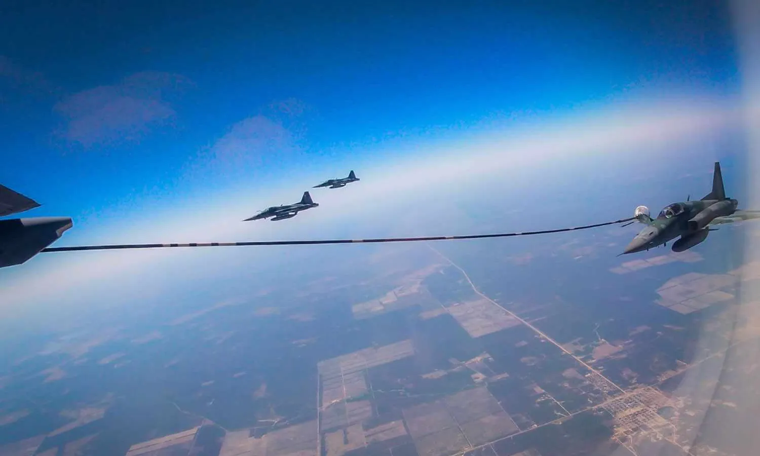 As a result, the six Northrop F-5M Tiger II fighter jets participating in Salitre were accompanied by a KC-390 Millennium, Embraer's multi-mission jet. The seven planes left the Canoas Air Base, in southern Brazil, heading for Chile. According to the FAB, the KC-390 transferred 14 tons of fuel to the F-5M fighters.