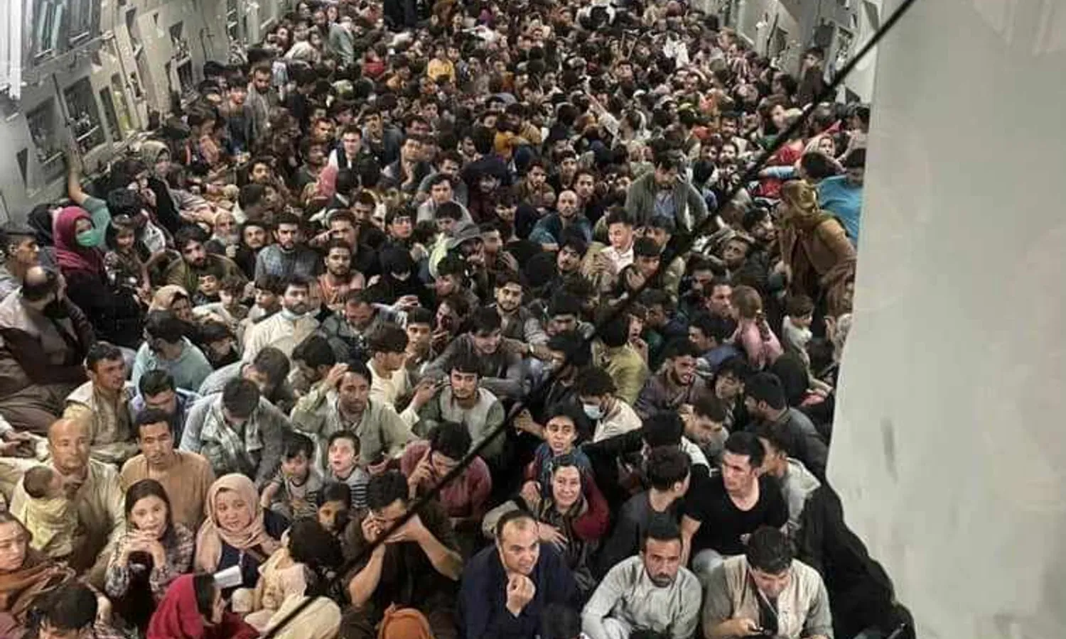 The image of the interior of the C-17 Globemaster III (an aircraft capable of transporting up to 134 soldiers) with hundreds of people spreads on social media and the press worldwide.