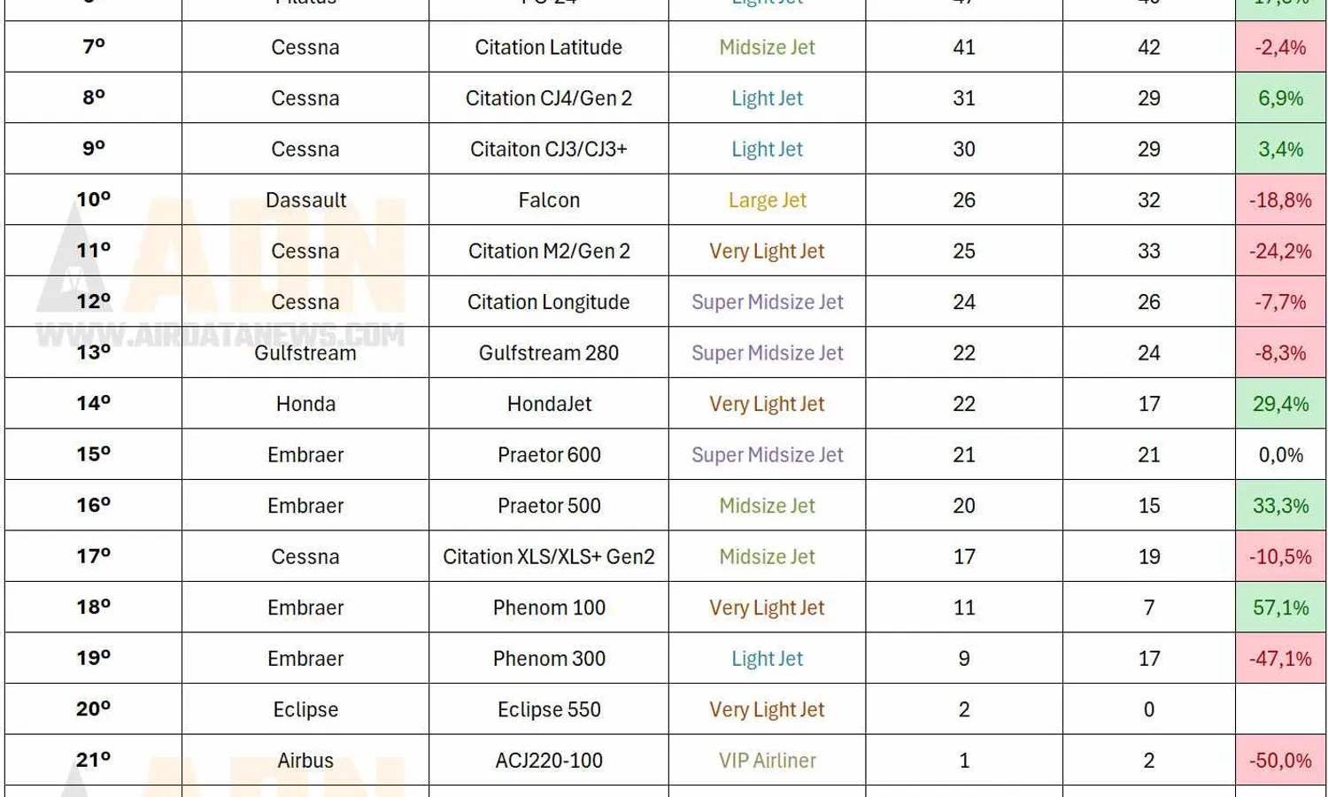 Gulfstream, Bombardier and Dassault once again only released totals by aircraft family, which puts them at the top of the ranking.