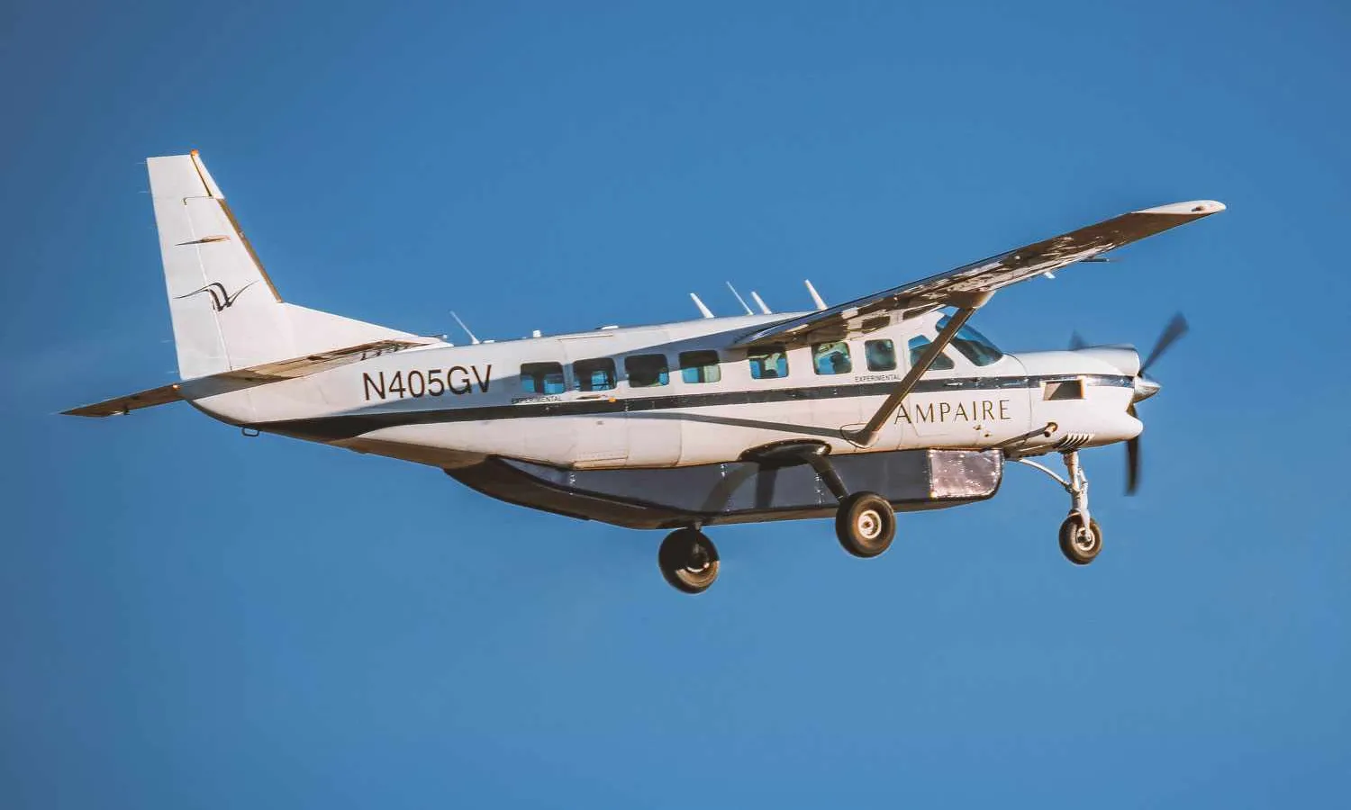 With Ampaire test pilot Elliot Seguin, the Eco Caravan registered N405GV flew for 33 minutes on its first sortie. According to the California company, the hybrid model was taken to an altitude of 3,500 feet and tested different propulsion configurations until it returned to the point of origin.