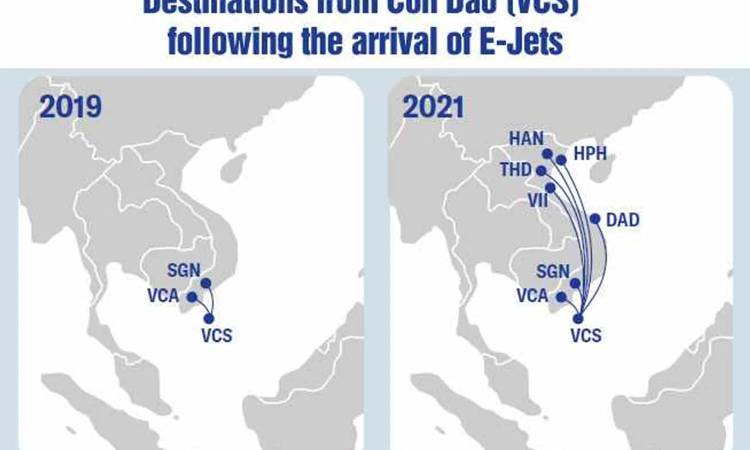 To prove its thesis of better connectivity with regional jets, Embraer presented very interesting figures about Côn Đảo, a tourist archipelago located 230 km from Ho Chi Minh, the largest city in the country.