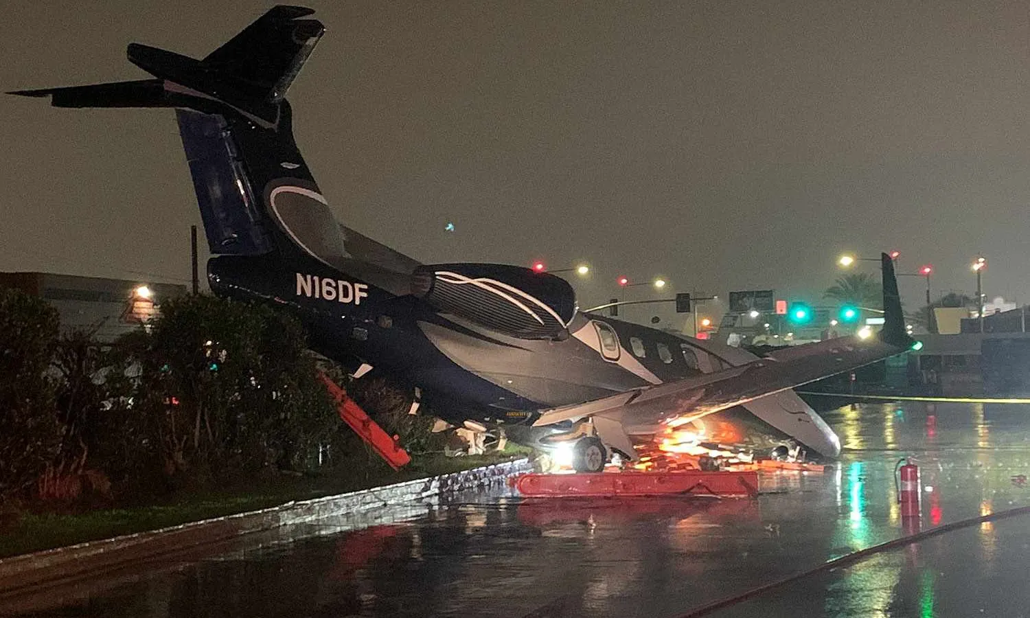 After landing at Hawthorne Municipal Airport, around 6:30 pm (local time), the Phenom 300 was unable to brake in time and overran the runway, breaking through a fence and stopping a few meters from an avenue. None of the passengers and crew were injured, according to firefighters who responded to the incident.