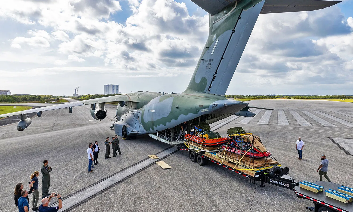 In a post on social media, Embraer said it had demonstrated the aircraft in support of “rescue missions and space logistics operations.”