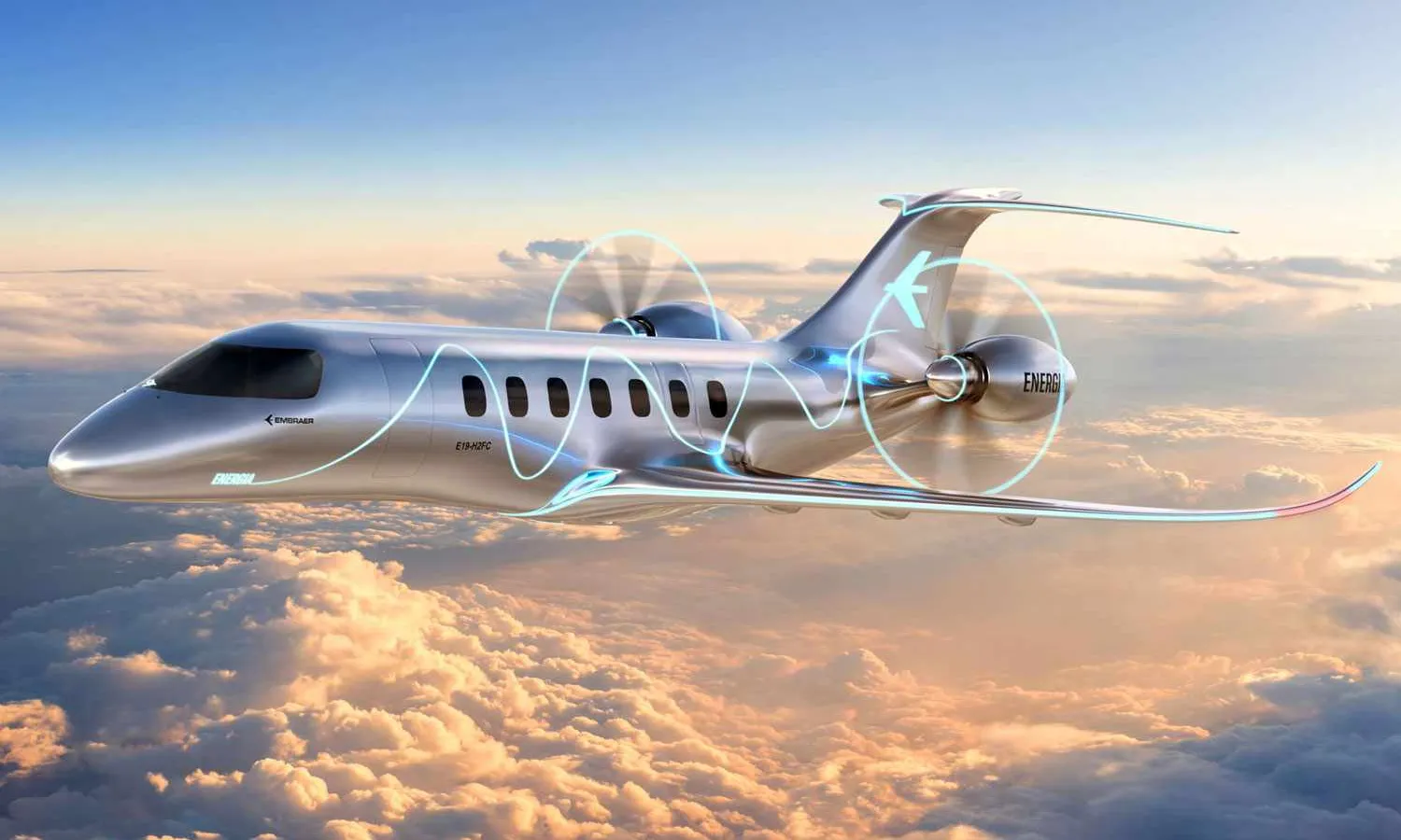 The Energy H2 Fuel Cell aircraft makes use of electric propulsion but derived from hydrogen cells instead of carrying batteries. The configuration was conceived in a 19-seat aircraft, has zero CO2 emissions and is very reminiscent of a corporate jet like the Praetor, but with the rear section elongated to accommodate the hydrogen tanks - 2035 is considered a feasible timeframe for the technology.