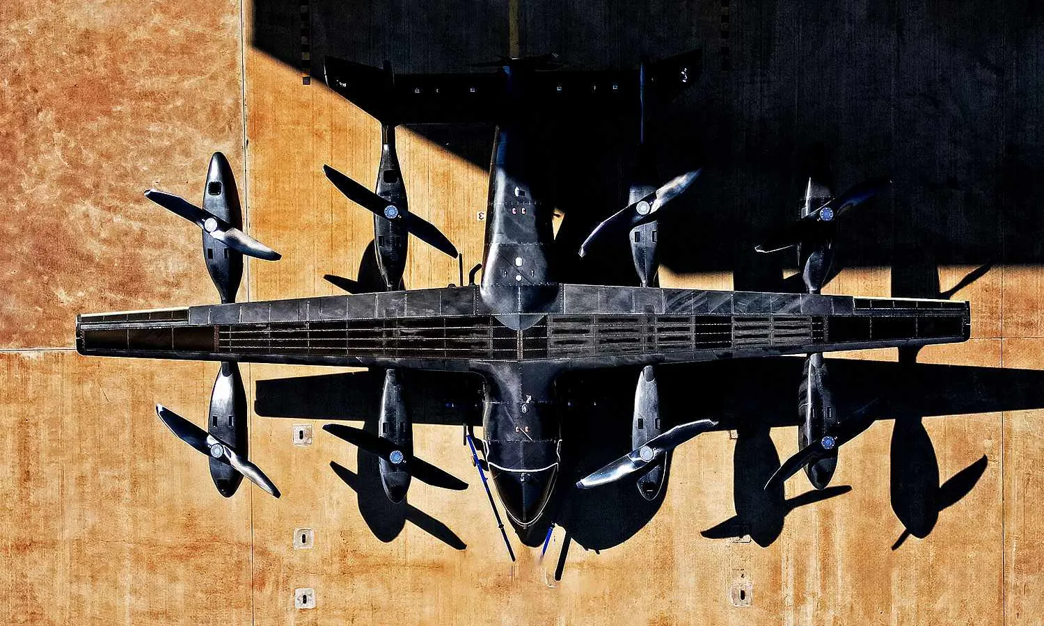Still without a paint job, which reveals the carbon fiber structure, the eVTOL can be partially appreciated for the first time in its real form.