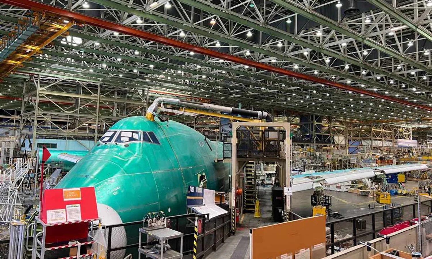 The other photo, published by Paine Airport, which tracks the movement of aircraft manufactured by Boeing, shows a 747 in an different stage of production, in the area of systems installation.