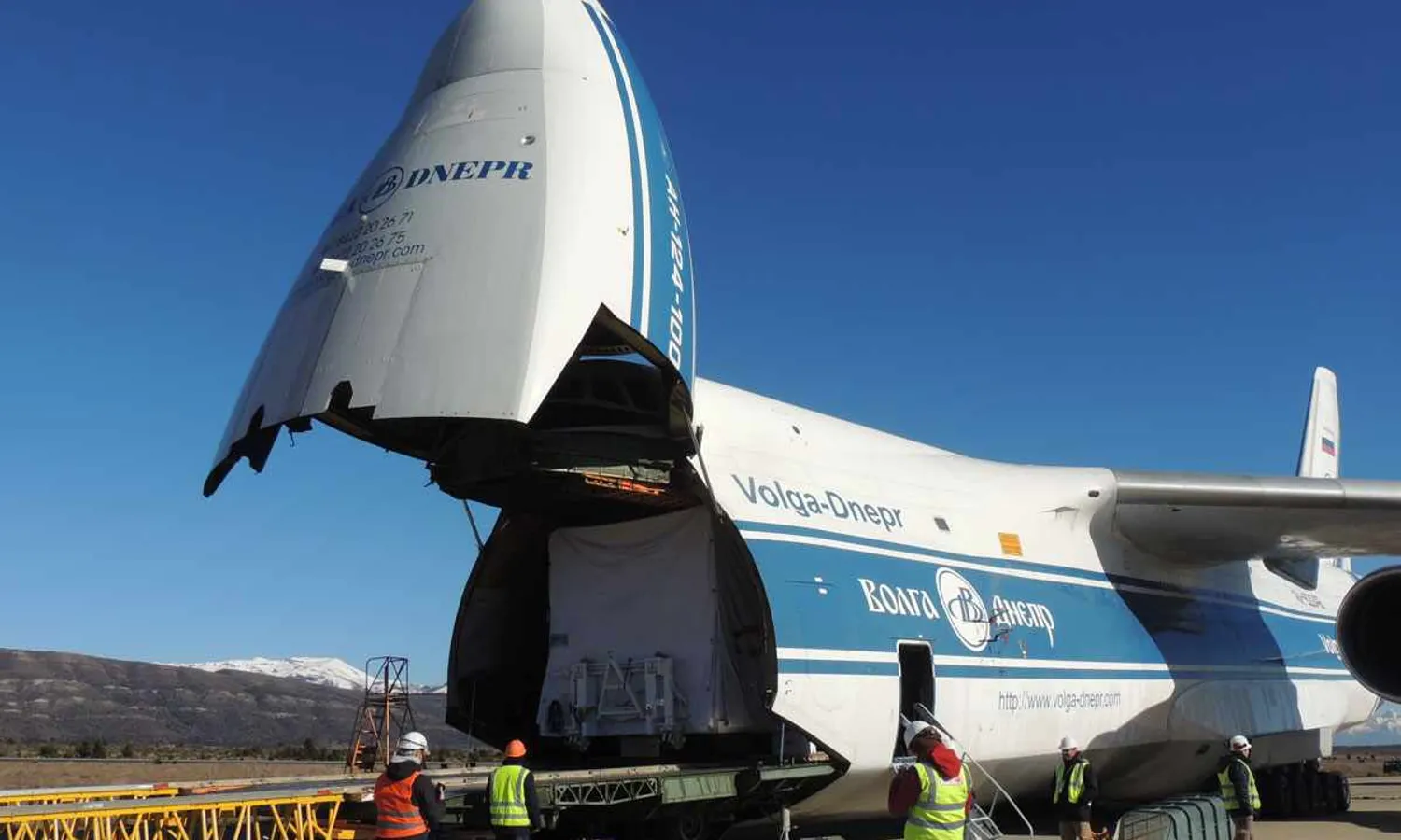 Shortly afterwards, Volga-Dnepr entered into a partnership with the British HeavyLift and its planes began to circulate in various countries, carrying bulky and diverse items such as turbines, reactors, cranes and even trains.