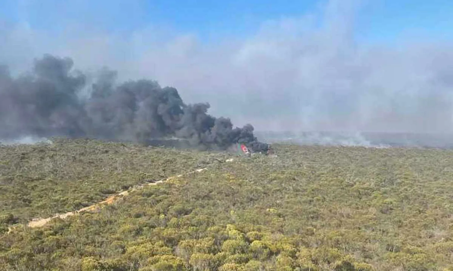 A video taken from an airplane was released by the Department of Fire and Emergency Services (DFES) showing the Boeing 737 still on fire, but with the front part of the fuselage preserved, which possibly allowed the two pilots to escape.