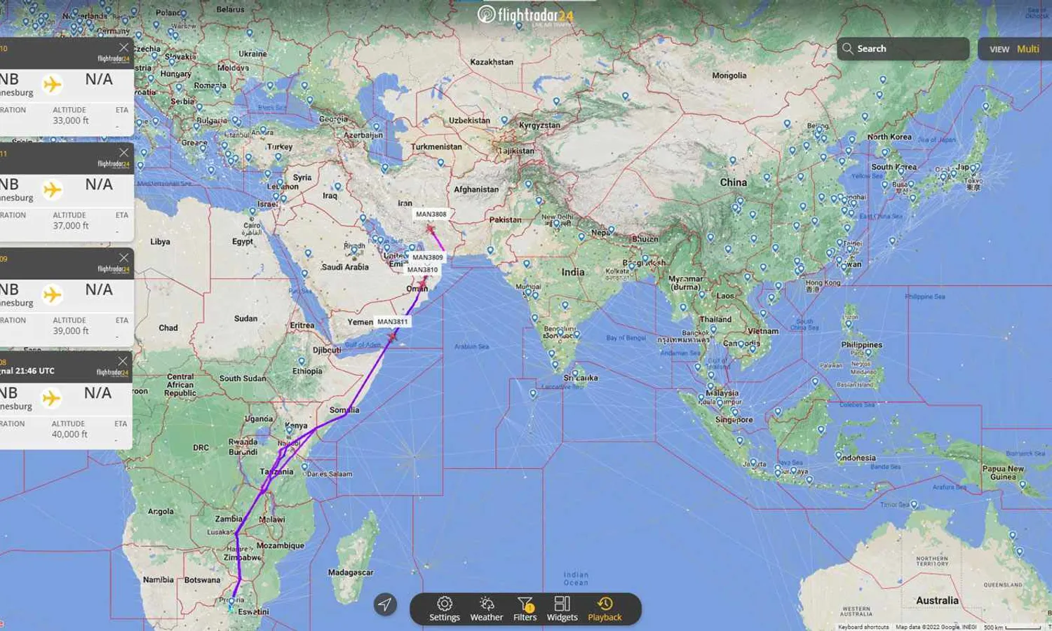 On December 23, four Airbus A340-300 widebodies took off a few minutes apart from Johannesburg International Airport, in South Africa, and followed on a direct flight to Tehran, capital of Iran. However, the aircraft's original flight plan mentioned Uzbekistan as the final destination, but they never arrived there.