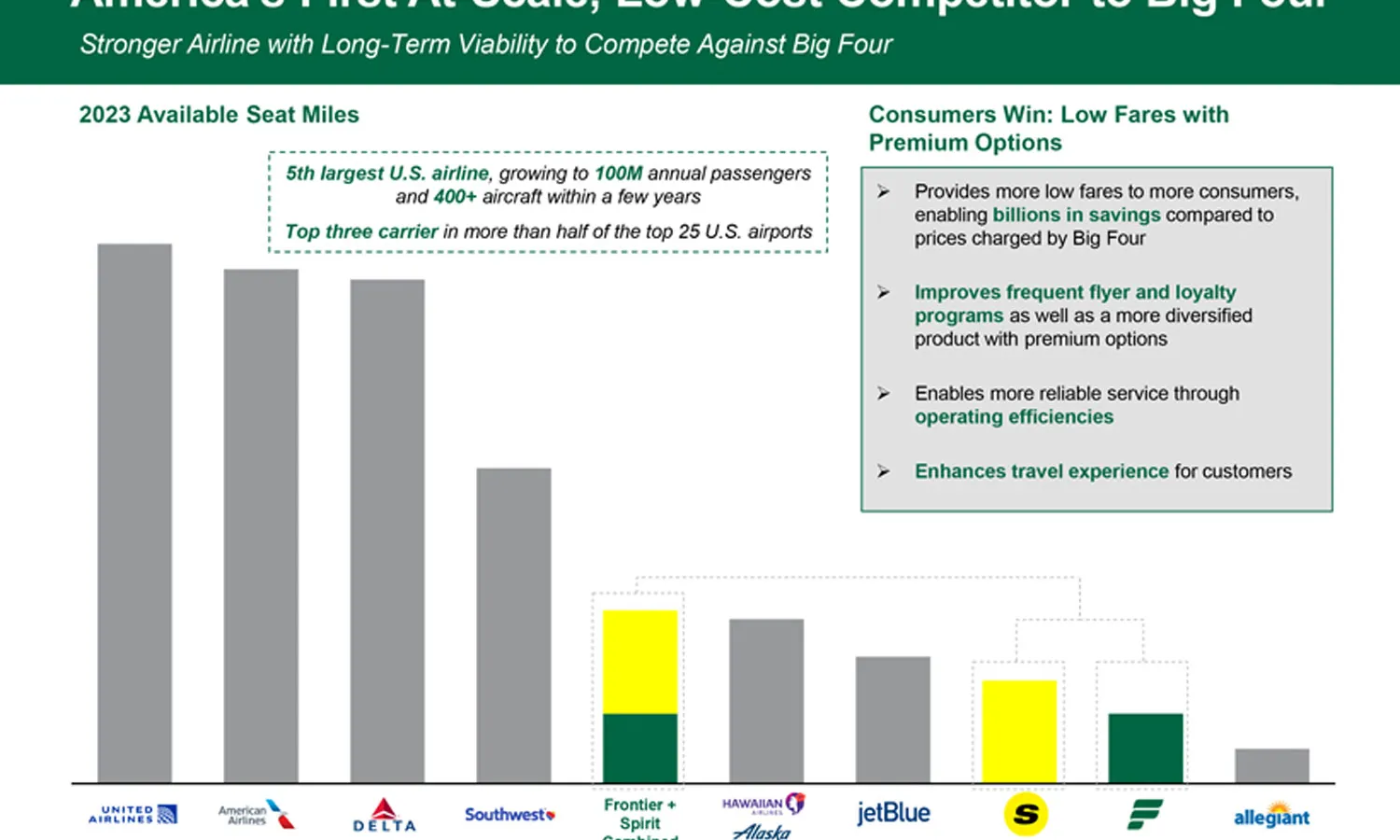 The potential merger could create the 5th largest airline in the U.S., behind only United, American, Delta and Southwest and just above Alaska/Hawaiian.
