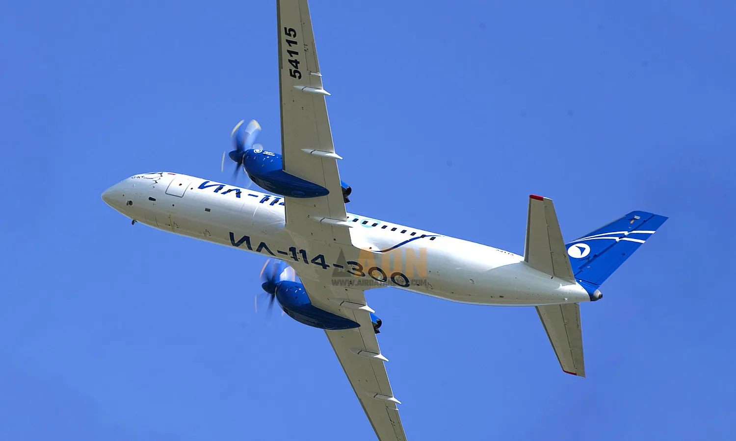 The concern to “Russify” its aircraft led UAC to apply national paints to the Il-114-300, a 68-passenger tubeprop similar to the ATR 72.