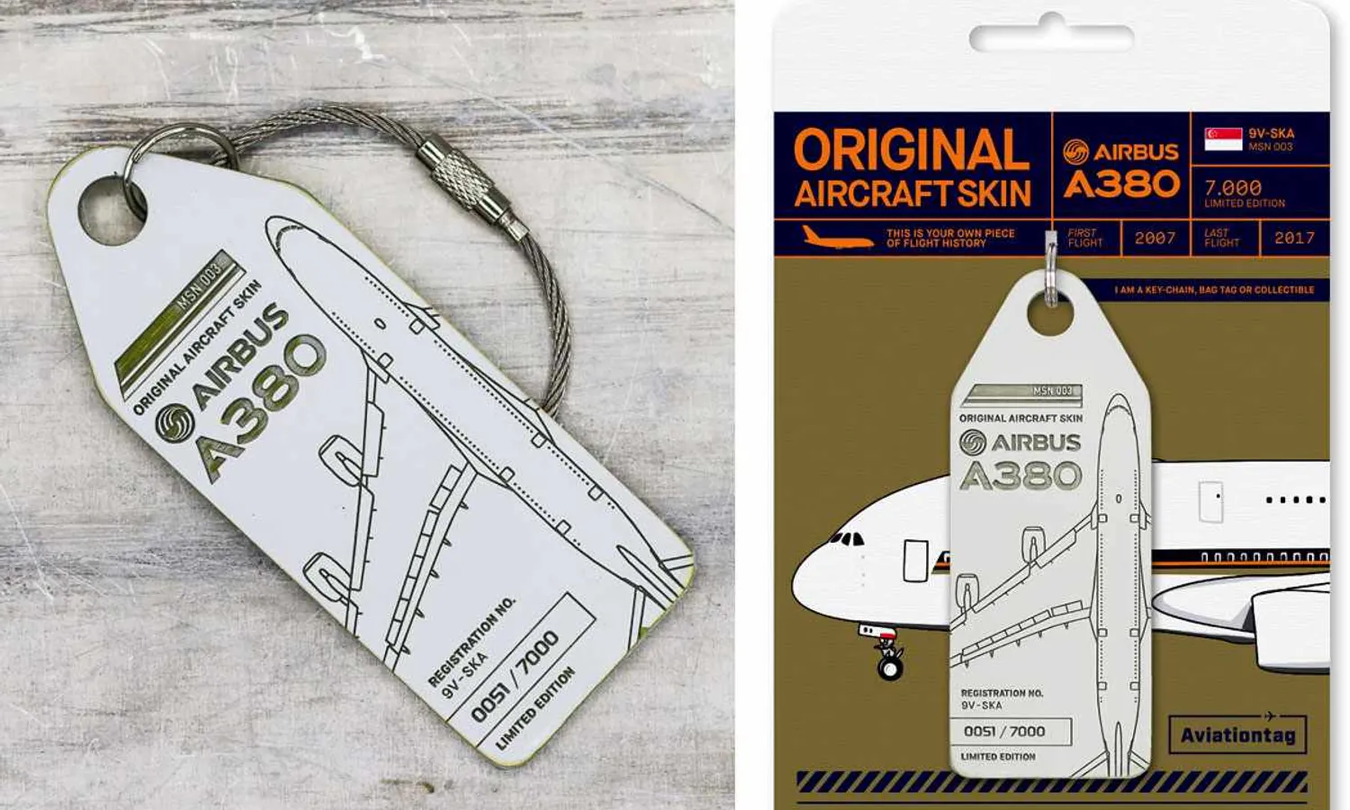 Specializing in metallic luggage tags with an aviation theme, the company Aviationtag had its limited edition manufactured with parts of the fuselage of the first deactivated A380 sold out in less than 48 hours.