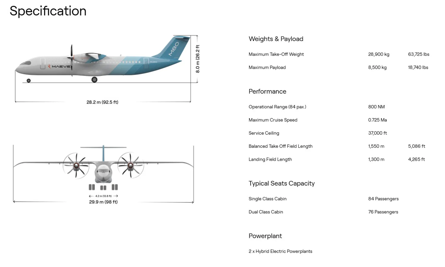 Maeve introduced the M80 a little less than a year ago after changing its initial approach, which envisaged a battery-electric aircraft with 44 seats and a short range.