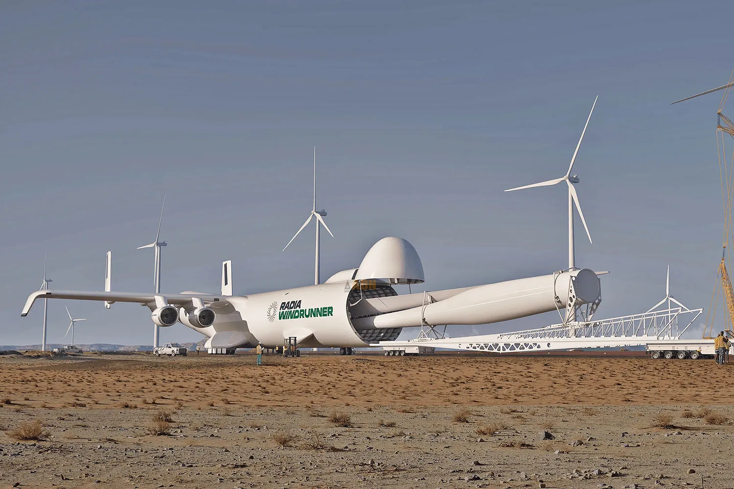 Radia’s four-engine cargo plane aims to be the world’s largest and offer transport services for huge components such as wind turbine blades, satellites and armored vehicles.