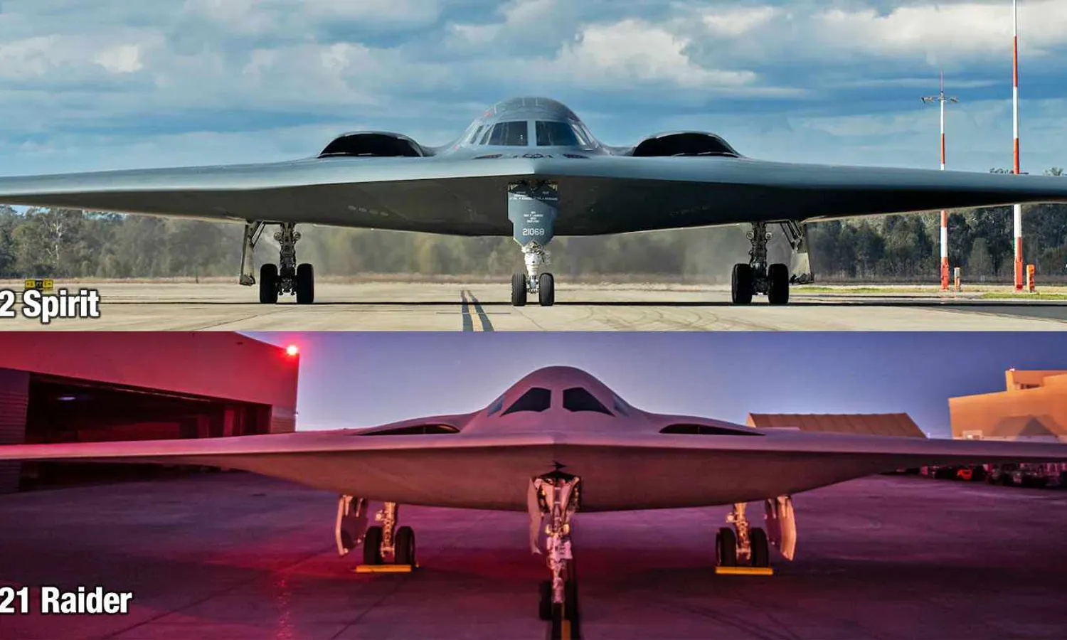 As they are flying wings, the B-2 and B-21 depend on the distribution of components and weapons in the central portion of the structure, but in the Raider this central volume seems larger while in the Spirit it extended more towards the tips.