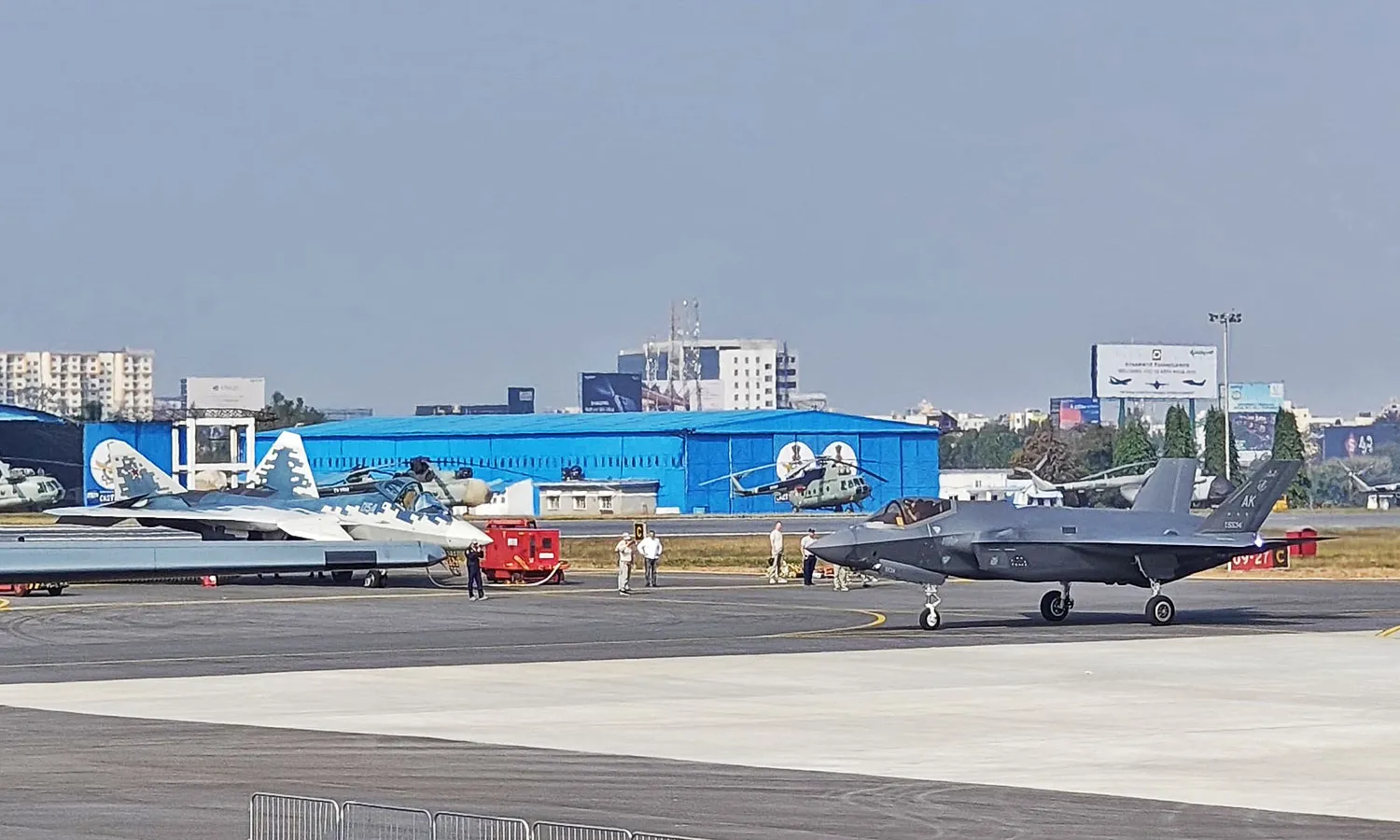 A unique sight emerged on Saturday at Yelahanka Air Force Station in Bengaluru, India. Two US Air Force (USAF) F-35 fighter jets arrived at the venue to take part in Aero India 2025 and were met by a Russian Sukhoi Su-57 fighter jet.