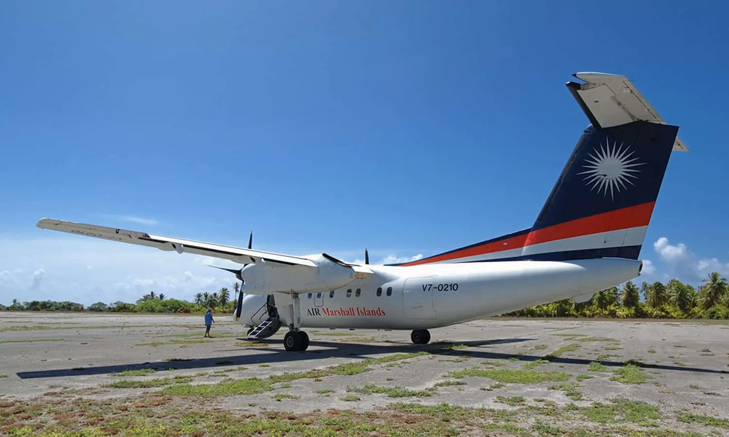 AIR Marshall Islands is owned by the government of the Republic of the Marshall Islands and is headquartered in Majuro, the country’s capital. The small airline operates just two DHC-8-100 turboprops from the single runway on the main atoll.