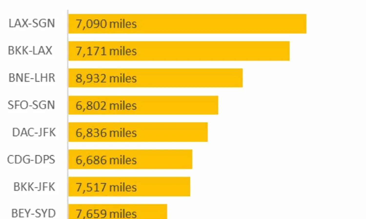 The other eight missed routes featured in the OAG top 10 are within reach of today's aircraft, such as Los Angeles-Saigon, the most popular among the routes evaluated and with a potential for 270,000 passengers per year.