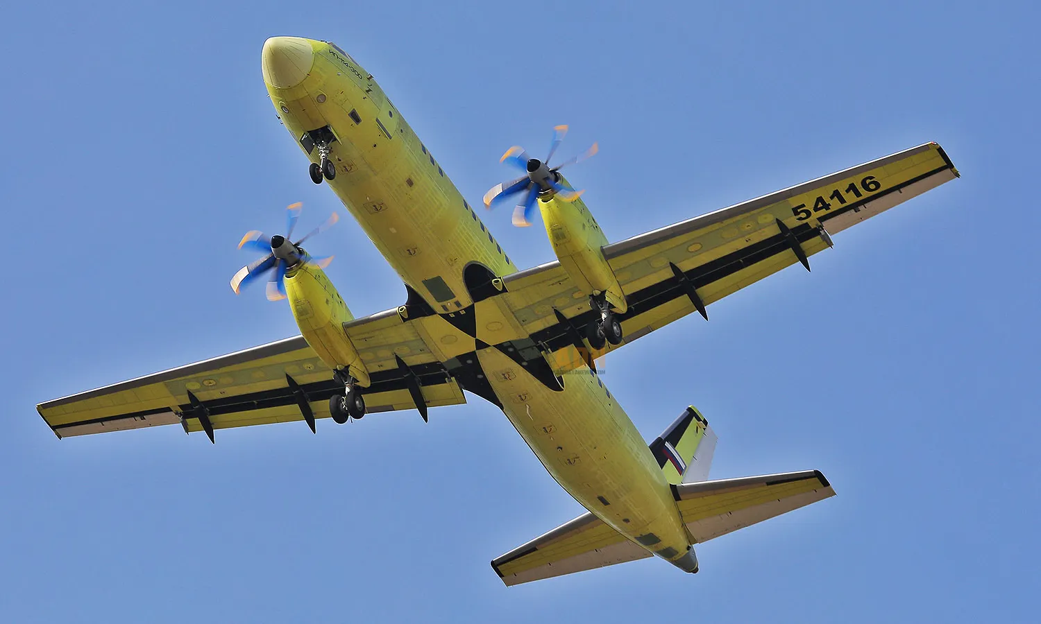 An upgrade of the original Il-114, the low-wing twin-engine turboprop is equipped with TV7-117ST-01 engines that drive a set of six-blade propellers.