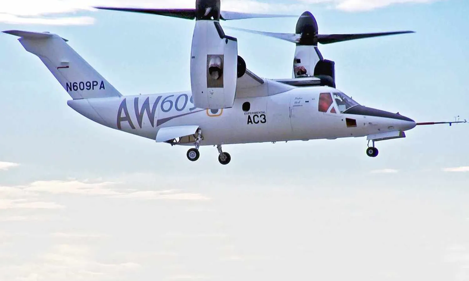 The first civil tiltrotor flight took place only in 2003 and followed a long period of development with two prototypes, caused in part by a lack of resources. Despite this, the AW609 achieved promising numbers: maximum speed of 337 miles per hour, maximum altitude of 30,000 feet and maximum takeoff weight of 8.2 tons.