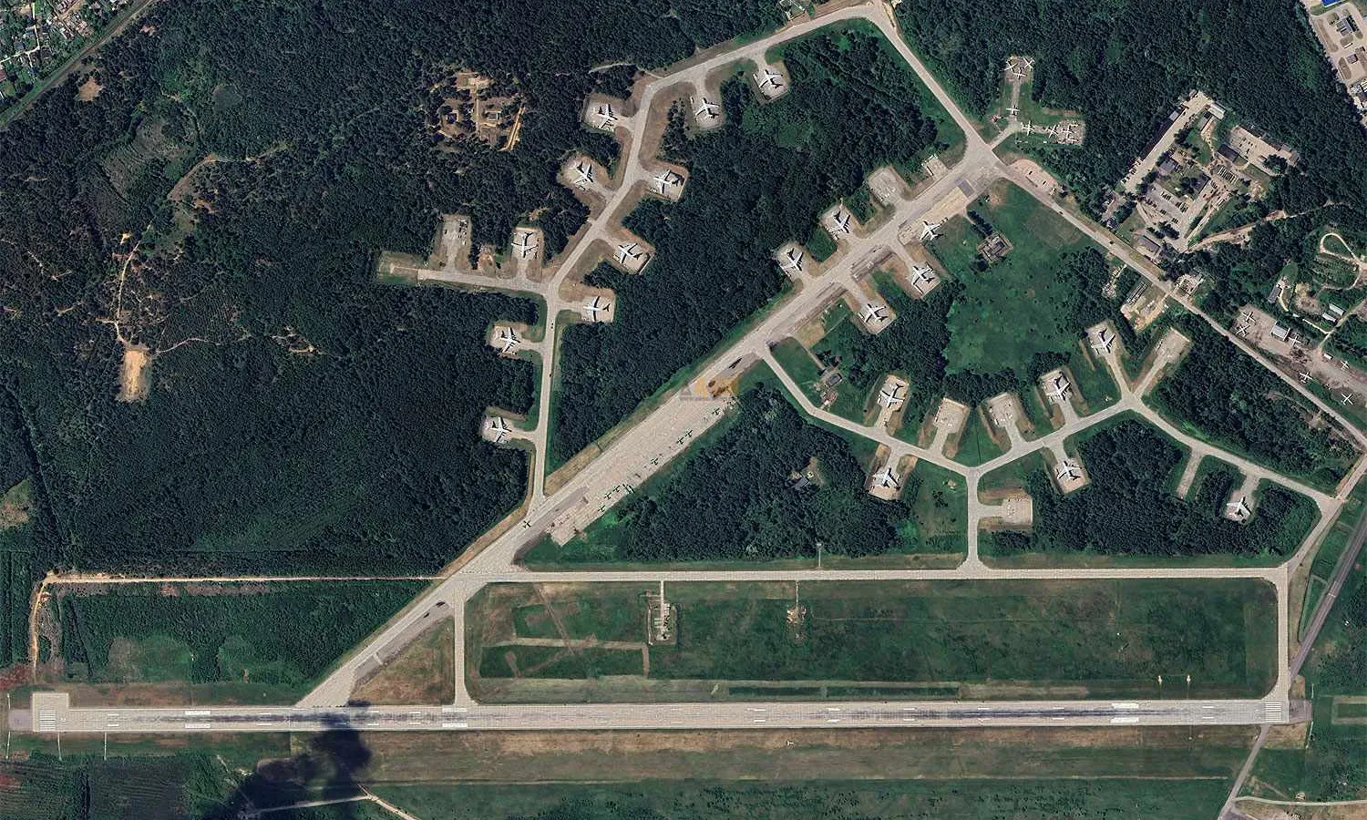 The Pskov air base is home to the 334th Military Transport Aviation Regiment of the Russian Aerospace Forces (acronym VKS in Russian) and has 27 revetments for large aircraft.
