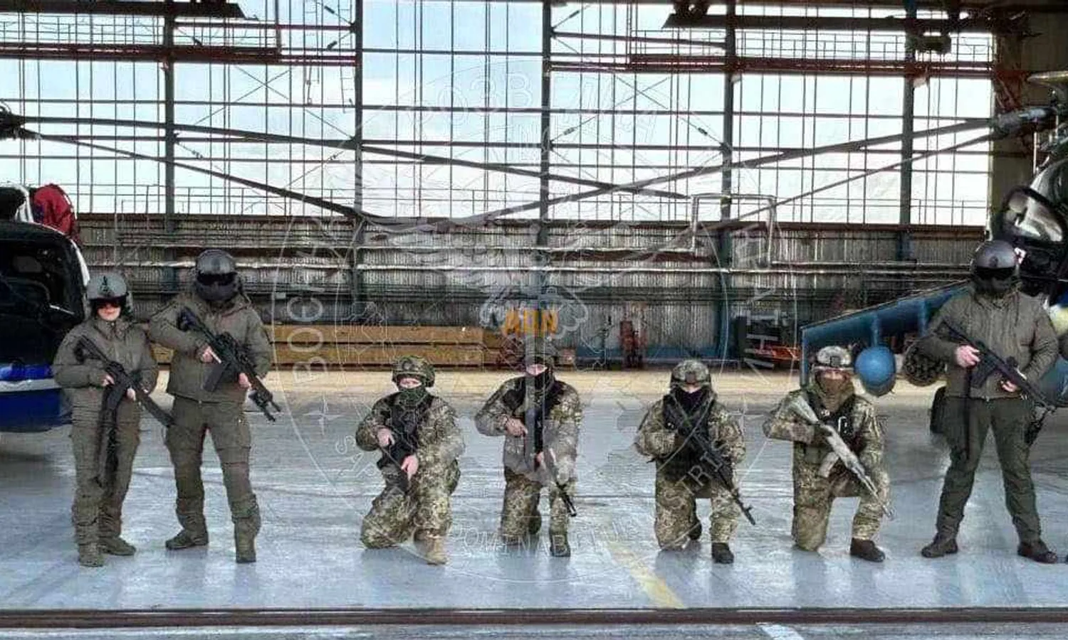 The aircraft emerged alongside a Mil Mi-24 helicopter and members of the special operations service.