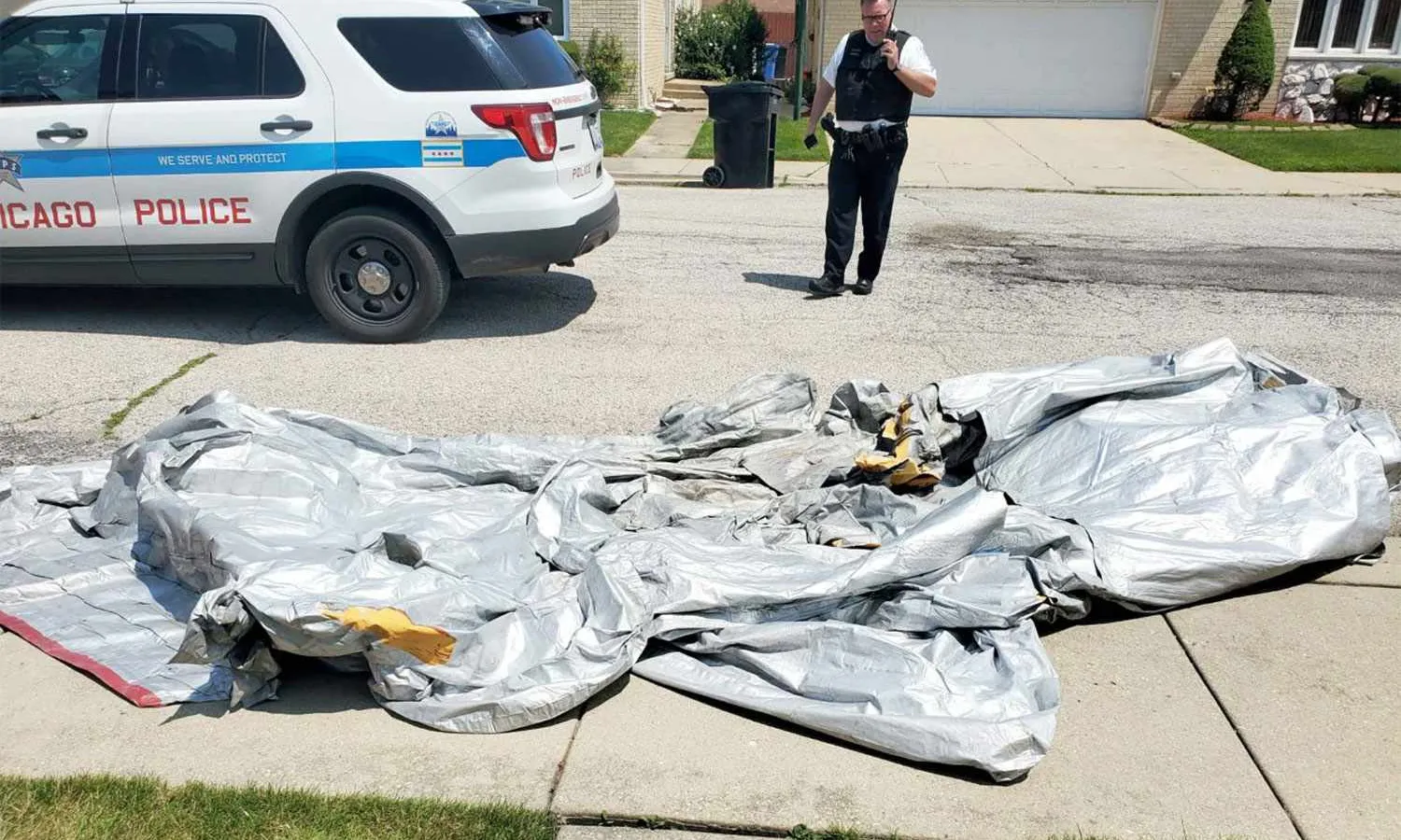 It is not clear where the deflated equipment came from. Video recorded in the vicinity shows the piece falling after an airplane passed by.