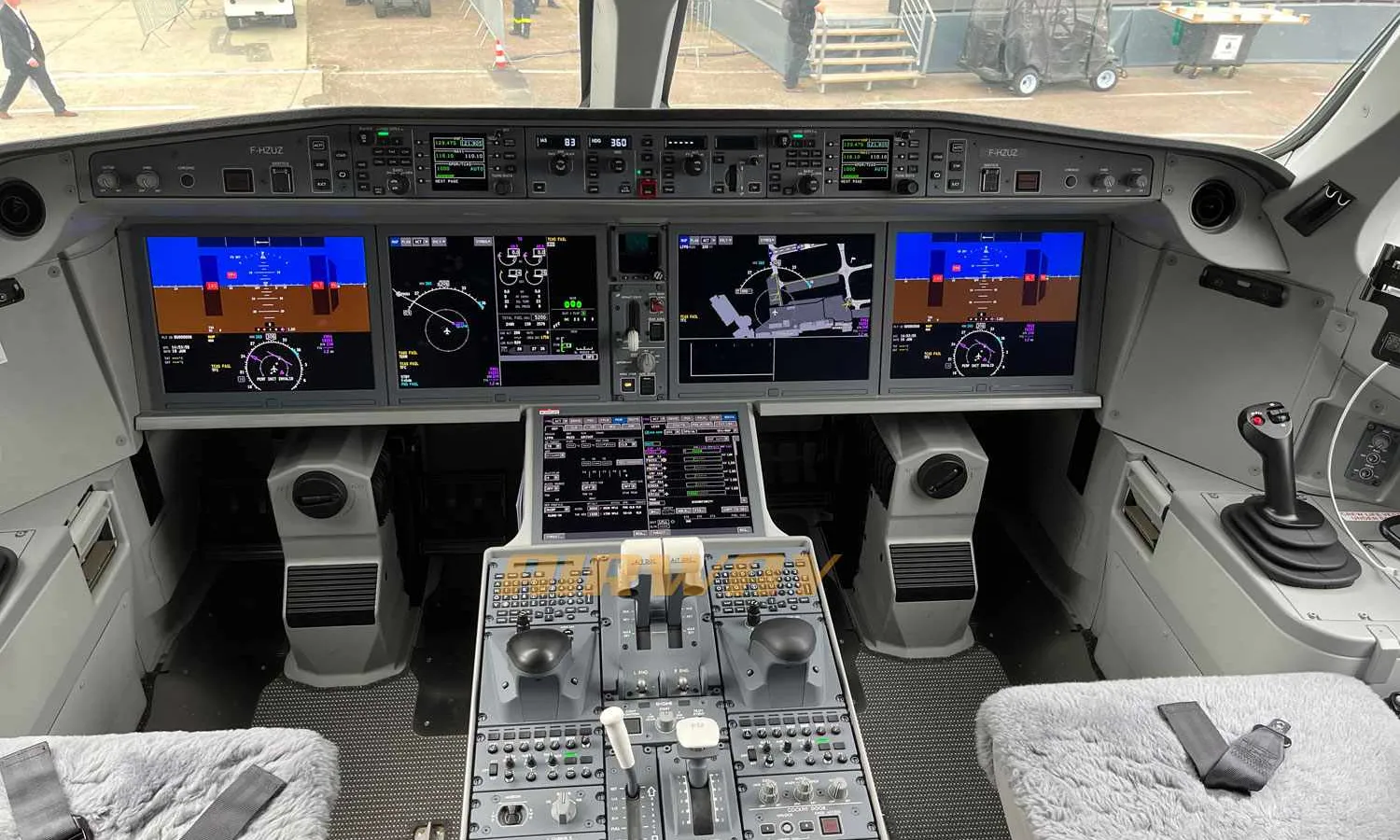 One look at the cockpit and there are the side sticks, electronic flight controls that resemble a video game, as well as digital screens and a mouse to access the flight computer.